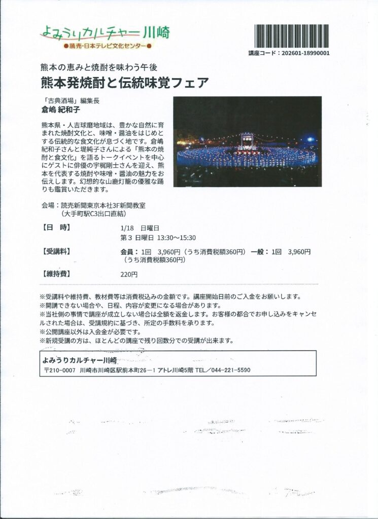 お申し込みサイト→ https://www.ync.ne.jp/kawasaki/kouza/202601-18990001.htm